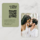 Simple, stylish wedding website photo enclosure card in a modern minimalist design style with a retro typography in classic black written in an informal casual style on an olive green background. The text can easily be personalised with your names, wedding website, scannable QR code and message for a unique one of a kind wedding design to keep your friends and family up to date about your upcoming special day. If you need any help customising this product, please contact me using the message button and I'll be happy to help.