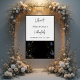 Welcome your guests in style with our elegant frosted acrylic wedding sign. Featuring a sleek black frame and an eye-catching black & gold abstract space illumination, this sign exudes sophistication and charm. The upper portion of the sign is frosted, offering a perfect canvas for your personalised message. Ideal for an elegant wedding, this abstract welcome sign combines modern design with timeless elegance. Make a lasting impression on your special day with this stunning acrylic sign, where your custom details will truly shine. Available in 6 different sizes, customisable for every other occasion like birthday, anniversary, party and more.