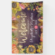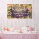 Wedding Welcome Banner Templates - Elegant Autumn Maple Leaves, Pumpkins and Sunflowers Watercolor Flowers on Rustic Wood Background.