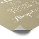 My thoughts on this product was excellent. Well printed in a gloss finishing and just the size l ordered. It arrived in good condition and am overall satisfied with the product. The printing turned out great. I was quite surprised with the finishing touch to the poster. The semi gloss was just right and a perfect size to display at the wedding.