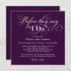 Elegant and chic wedding welcome party invitation features a calligraphy script heading : Before they say "I Do". Square design. Eggplant purple and white colour scheme.