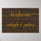 Wedding Welcome poster with modern handwritten script text. Image of old wooden background. All text can be resized to fit your poster size and can be fully edited for colour, font, and layout.