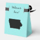 These sweet little map favour boxes are perfect for giving to your guests when they check into their hotel. Fill with little treats they can enjoy before the festivities begin. Or, send them home from the reception with a midnight snack. You may change the background colour to match your wedding theme.