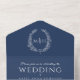 Wedding white dark blue oval leaves monogram all in one invitation