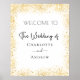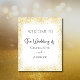 A white background, decorated with faux gold glitter sparkles. With the text: Welcome to The Wedding of. Personalise and add your names.