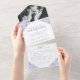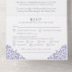 Blue purple on white hand-drawn growing leaf botanical art add your own couples photo wedding all-in-one invitation. Personalise this detachable reply wedding invitation with your own wedding ceremony details, a photo of the happy couple, and add your RSVP with guest meal options to your detachable replies. Simple leaf design corners and circling your own monogram initials on the outside flap. Other colours and matching wedding items available. © Original leaf hand drawing and design by artist and designer Sarah Trett for www.mylittleedenweddings.com on Zazzle.