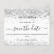 Wedding white silver glitter budget save date