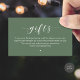 Celebrate the beginning of your journey together with our modern Beautiful Elegant Romantic script, sage green theme, Wedding Wishing Well, A note on wedding gifts Enclosure Card.