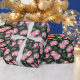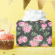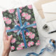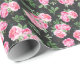 This roll of wedding wrapping paper is shown with a lovely pink peony print on a black background.