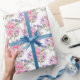 This roll of wedding wrapping paper is shown with a lovely pink floral print.