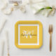 Wedding Yellow & White Chic Script Monogram Name Paper Plate