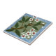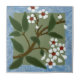 Reproduced from an antique Wedgwood tile that was hand stenciled with clay, this tile features a branch of white blossoms against a gray-green background framed in a sponge-painted blue border. Available in 4 and 6 inch tiles as well as other Zazzle products.