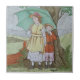 This is the Wedgwood April tile of the month in hand painted colours and shows a boy and girl under a large umbrella during an April "shower". A great memento for April birthdays and other occasions. Reproduced from a circa 1885 series of hand-coloured tiles representing the months of the year by Josiah Wedgwood & Sons. Also makes a great accent tile, display piece, wall or backsplash tile, or fireplace surround. Available in 4.5 and 6 inch tiles as well as other items. We have two complete sets - this one in full colour and another in blue and white.