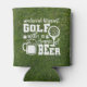 "Weekend forecast golf with a chance of beer" white typography on green grass background with golf ball on tee and a foamy glass mug of beer. Perfect for a golf themed birthday party, graduation gift, or retirement party.