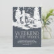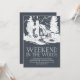 Escaping to the woods for a fun bachelorette weekend? Invite the bride's besties with these rustic chic invitations in smoky navy blue-grey and white. Design features a rustic cabin and woods illustration with "weekend in the woods" in white lettering. Customise with your event type and details to make this invitation your own -- use for a bachelorette party, hen party, girls' weekend and more!