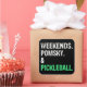 If you love Weekends, Pickleball and your Pomsky, then this is the perfect t-shirt, hoodie and merch design. Great to wear when training, walking, playing with your dog, or enjoying a pickle ball game!