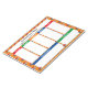 Modern colourful HOLIDAY ACTIVITY PLANNER Tear Away Notepad, showing background pattern of books. Main days are Monday to Friday, with shared Saturday/Sunday and section marked SPECIAL TREATS. All text is CUSTOMIZABLE including the headings, so you can personalise as you see fit and change the column headings. The main colours are red, green, orange and blue against a BRIGHT ORANGE background. This would make a great gift for Back To School, and can be customised to use as a Personalised Weekly Planner for teachers and family homes. Especially useful for planning activities during the school holidays. Matching items available. Also comes in other colours.