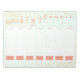 This weekly planner notepad features a mint striped background, "gold" confetti, with blush calligraphy and flags on each day of the week to write in the date!