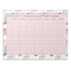 Blush pink watercolor floral/tulips on white custom weekly schedule for an individual or family. 40 sheets of paper, one per week. Labeled Sunday through Saturday with blank spaces to write in your schedule. Customize with your name or family name.