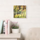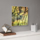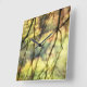 A deliberately our of focus photograph by the evening light of gardens through a weeping willow tree. Yellows and greens burst through the twigs.
