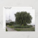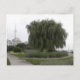 A weeping willow tree in the Toronto Music Garden on Toronto's waterfront against a moody foggy sky