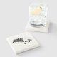 The coasters are gorgeous, a quality feel and heavy weight. They look like a precious archeological find. A rustic stone juxtaposed with a modern floral black and white print. I like the way the print goes slightly imperfect on the cut stone edges giving them a kind-of natural beauty.