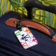 I was happy with the acrylic tag but it came with a thin leather strap to attach the tag to luggage (like a cat collar). I replaced the strap with a metal ring off of a key ring as the leather strap would come undone or break easily as luggage is sometimes handled without much care by airlines. Printing is great. Colours and positioning of the design I put on the tag were perfect. Very pleased.