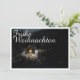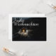 Die Karte zeigt eine stimmungsvolle, winterliche Szenerie mit einer kleinen, beleuchteten Holzhütte inmitten eines verschneiten Waldes. Die warme Lichtquelle im Inneren schafft einen schönen Kontrast zur dunklen, friedlichen Umgebung. Der elegante „Merry Christmas“-Schriftzug in Weiß verleiht dem Motiv eine festliche Note. 🎄✨