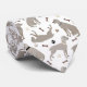 Cute Weimaraner dogs sit, stand and rollover with scattered dog bones and pawprints on a white background.