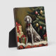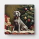 Weimaraner dog celebrating Christmas, Christmas tree and colourful presents.