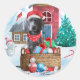 Weimaraner Dog In snow Christmas Dog House Classic Round Sticker
