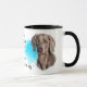 A portrait of a beautiful grey Weimaraner Dog is the feature on two sides of this mug. Each image is placed on a bright blue spatter background. Between the two images is the text that describes this loyal and loving companion, with "the WEIMARANER dog" in black at the bottom. All the text is easily customised to anything you'd prefer so that you may describe your own loyal friend.