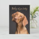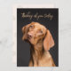 Weimaraner custom flat greeting card. “Thinking of you” is the sample wording on the front, with a place for the message and signature on the back. The front is dark coloured with a beautiful, brown dog on the front. Paw prints cover the back with handwritten script font style used. Use for any occasion such as sympathy for a pet’s death, or to encourage someone who is down. This card is also available as an instant download to share digitally.