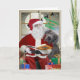 Weimaraner stands with chin on Santa's shoulder while Santa looks for him in Santa's book of good and bad names. This little Weimaraner puppy assures Santa he believes and has been a good dog. The inside of this card has Santa hugging the puppy and assuring him he is a, "Good Doggie."