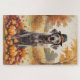 Weimaraner In Autumn Leaves Thanksgiving Art Jigsaw Puzzle
