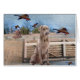 weimaraner poses in an outdoor scene against backdrop of blue skies, golden grasses and flying geese.