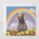A personalised Weimaraner memorial sympathy card with a beautiful painting of a Weimaraner on a heavenly hill with a beautiful rainbow overhead. Symbolising the Weimaraner dog has passed the rainbow bridge to doggy heaven. You can personalise it with your own Weimaraner dog's name or any other text on the back side of the card. Makes a special memorial or sympathy gift for any Weimaraner dog lover if their dear dog has passed.