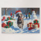 Weimaraner Running in Snow with Christmas Hat Jigsaw Puzzle