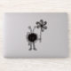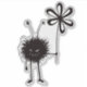 Evil creature sticker with the Evil Flower Bug in its vintage reincarnation - grinning cartoon evil character with sharp teeth holding a flower on dark vintage textured background. It's evil and kind of cute. It loves flowers... loves eating them, in fact. This evil character will make a great gift for someone who loves gothic designs and quirky illustrations. Or just funny creatures. The funny evil bug is a part of the family of the Evil Flower Bug - hairy black evil characters frequently found doing evil deeds, eating flowers and just having fun.