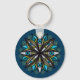 Weird Eyes Mandala Art - Trippy Flower Blue Green Key Ring