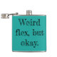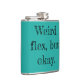 The flask itself is fine. It’s a cheap flask, obviously bought in bulk, however am prepared to overlook that. Given that it is a personalized item, I would have liked to have seen gift boxing instead of the generic packaging. Terrible printing, and/or quality. It’s a cheap, tacky vinyl. It is not cut straight and is also applied in a way that it is overhanging the bottom, causing the glue to catch on items and it will eventually roll and tear, damaging the wrap.