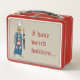 This is a standard metal lunchbox that appears to work just fine. We designed this box ourselves with an uploaded photo and custom text on the front and back. It looks absolutely beautiful except the front of the lunchbox is not centered like it shows in the photo. The print borders don't align with the inset flat part of the box where the preview photo online showed it perfectly centered in there. The back looks nice and centered though.
