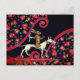 WEIRD MEDIEVAL BESTIARY Rabbit Riding a White Dog Holiday Postcard