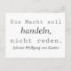 Dieses Johann Wolfgang von Goethe "Die Macht soll handeln, nicht reden." Typografie Zitat Design ist ein tolles Geschenk für Freunde und Verwandte. Genau richtig zum Geburtstag, B-Day, Weihnachten. Für Oma, Opa, Papa, Mama, Bruder, Schwester.