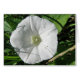 Eine Blüte einer weissen Winde mit kleinen Löchern ist auf dieser Grusskarte. Die Karte ist blanko und gestaltbar.