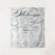25th Anniversary Welcome wall tapestry with fancy black script text over FAUX silver diamond pane background (which can be removed for a plain background in advanced edit mode). The word "welcome" is an IMAGE printed in flat ink and cannot be edited. All other text can be fully edited. Pick your size and customise the text, or click "Customise further" to change the background colour and font size or style.