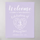 Welcome guests to your 3rd wedding anniversary party with this modern simple line art heart poster, available in several sizes. The design features white typography on crystal light purple with the words in script font and a line art heart gemstone with the words welcome celebration of 3 years of love. Personalise with your own names, anniversary year and wedding date underneath. The third wedding anniversary is associated with the gemstone crystal and the heart symbolises love. Other matching anniversary items available. Line art and design by www.mylittleeden.com on zazzle.