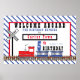 Modern, fun steam locomotive choo choo train striped "Welcome Aboard the Birthday Express" birthday party design which can be modified for any age child. The design is complimented with a red frame and a blue and white striped background. Original design by Holiday Hearts Designs (all rights reserved).