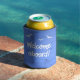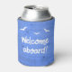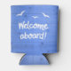 Welcome Aboard Blue Sailing Wooden Deck Texture Can Cooler