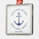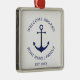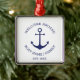Custom Boat name or Family name, Welcome Aboard, nautical anchor navy blue and white Christmas metal Ornament.